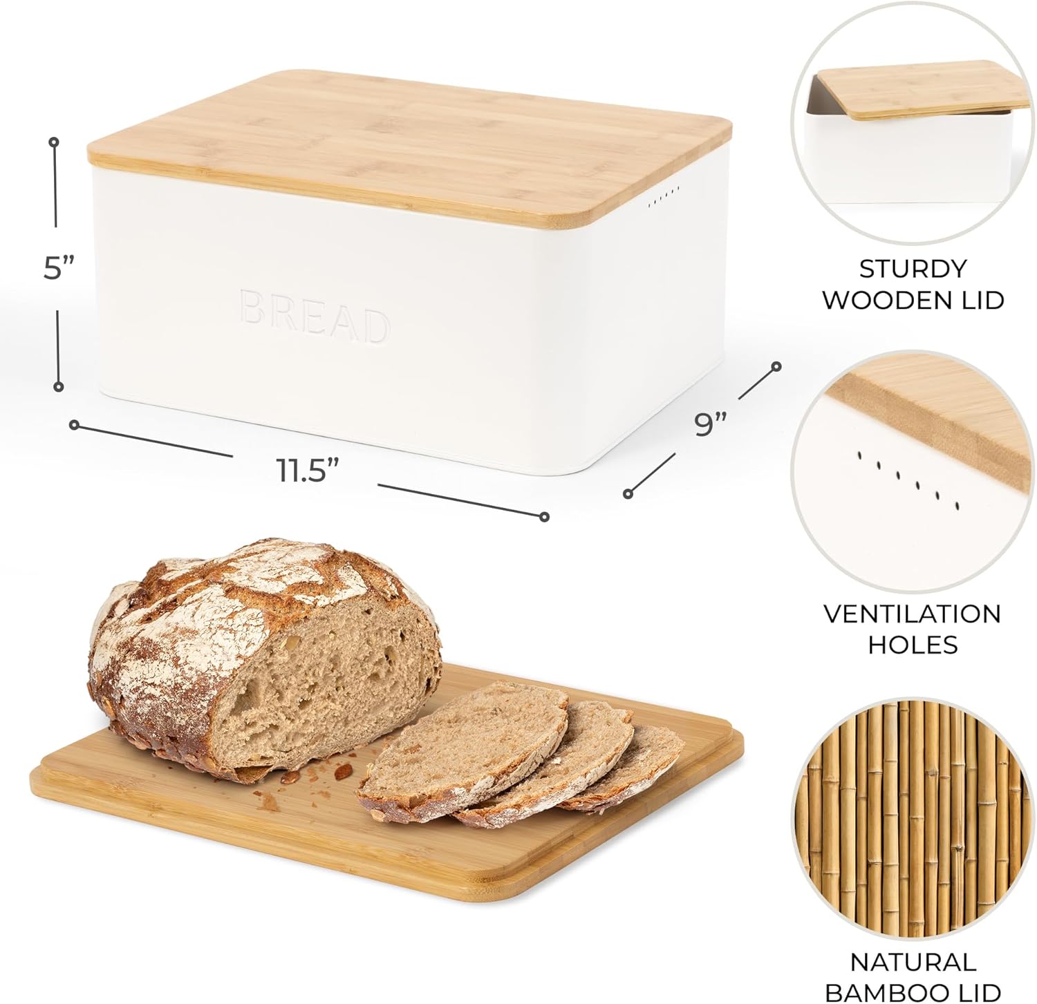 Introducing the Beautiful Bread Box with Wooden Lid for your kitchen countertop! This spacious container is the perfect solution for storing your homemade bread, English muffins, and bagels in style. The high-quality cutting board lid not only adds a touch of elegance to your kitchen decor, but also helps keep your bread fresh for longer periods of time. Say goodbye to stale bread and hello to perfectly stored baked goods with this must-have kitchen accessory. Upgrade your countertop today with the Beautiful Bread Box!